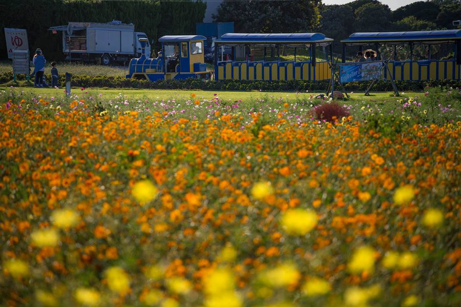 というわけで、キバナコスモスが満開のソレイユの丘へ。