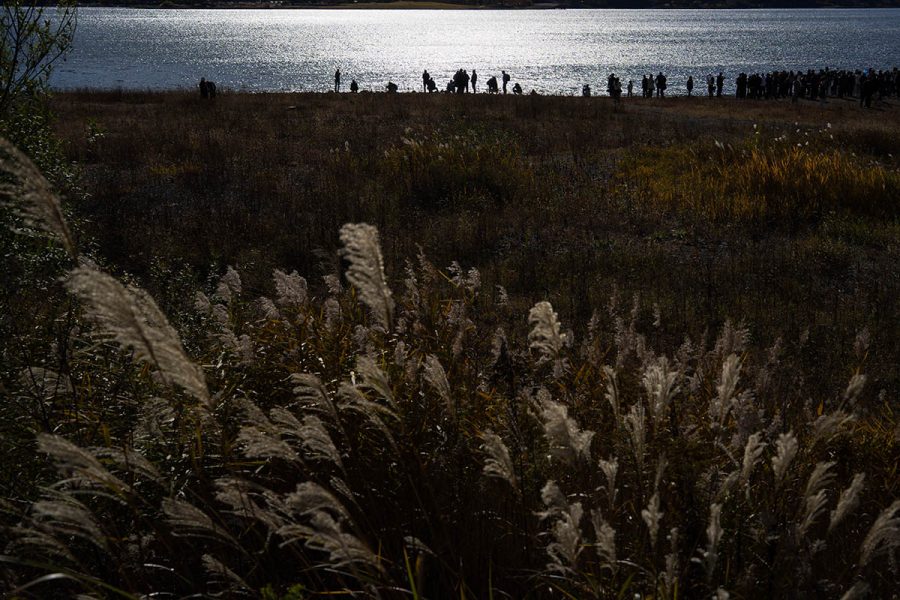 このあたりは、いつもは大石公園から自転車で足を伸ばすのですが、今回はもみじ回廊と湖畔の一部だけなので、無料の第一駐車場に車をとめて歩いて移動しました。