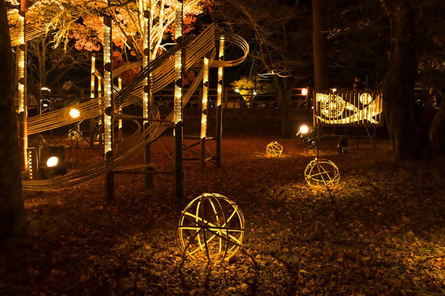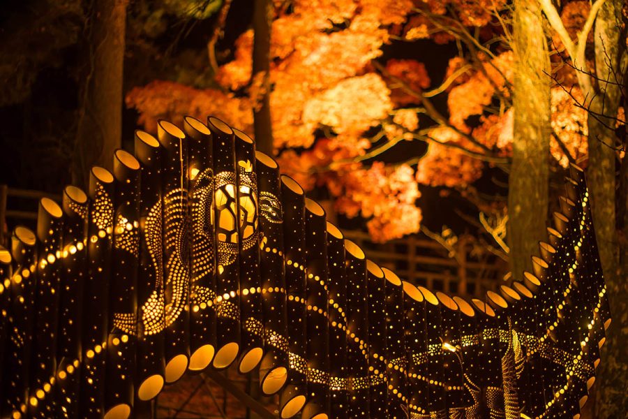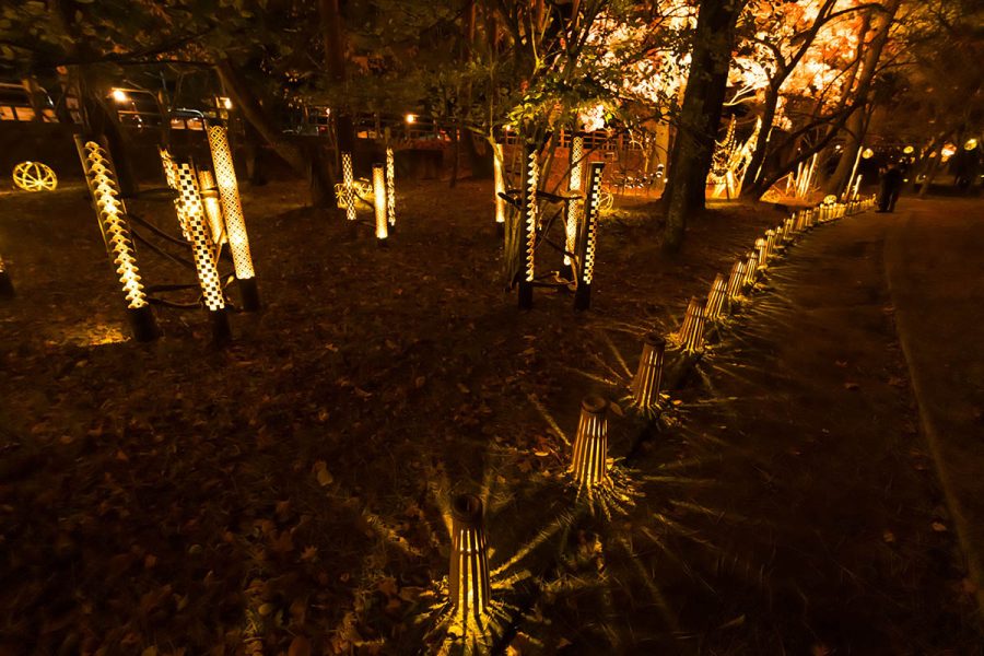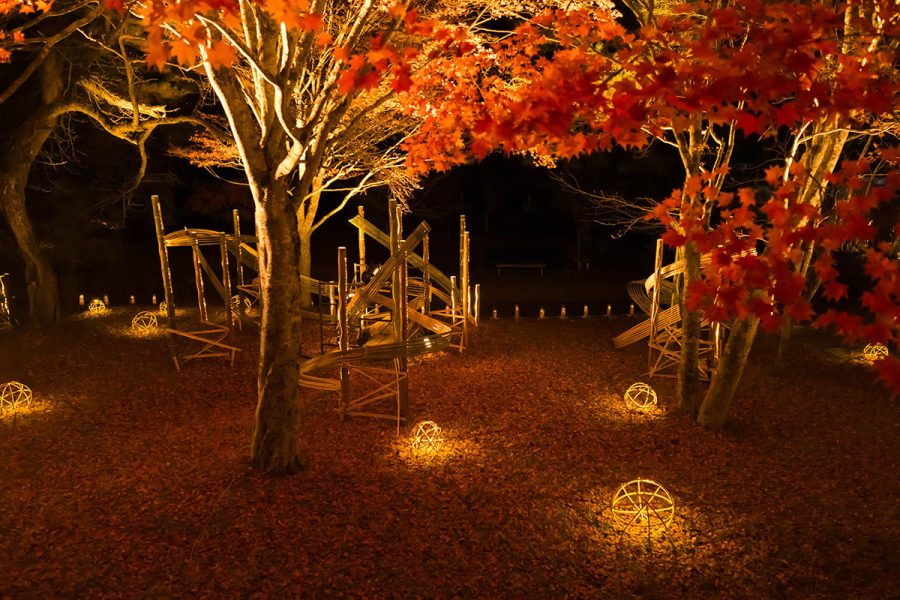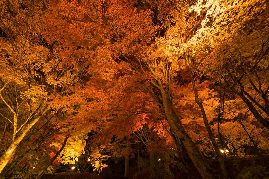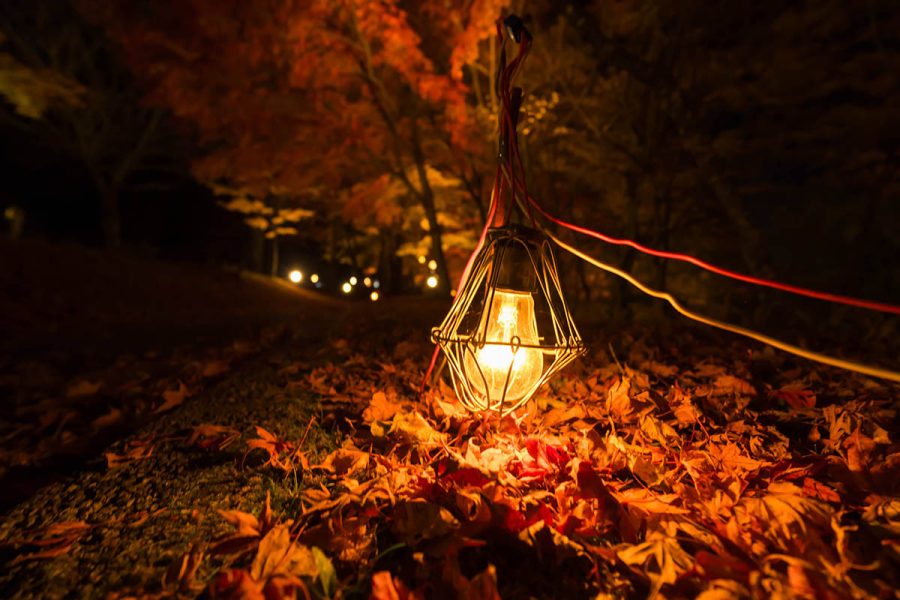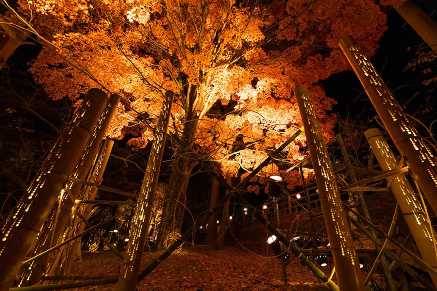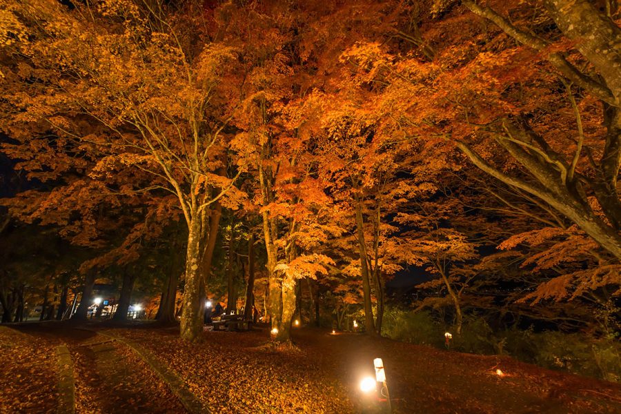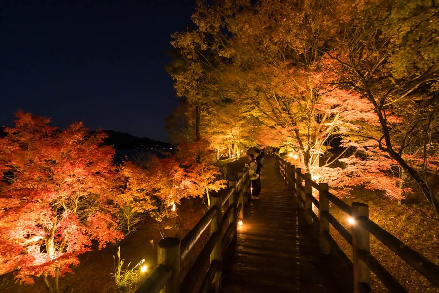 山中湖 夕焼けの渚 紅葉まつりが10/31から11/16まで開催されています。夜はライトアップされます。