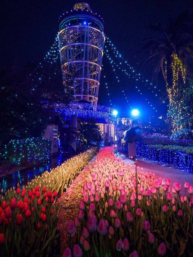 というわけで、イルミネーションと雫のアイスチューリップ狙いとしました。