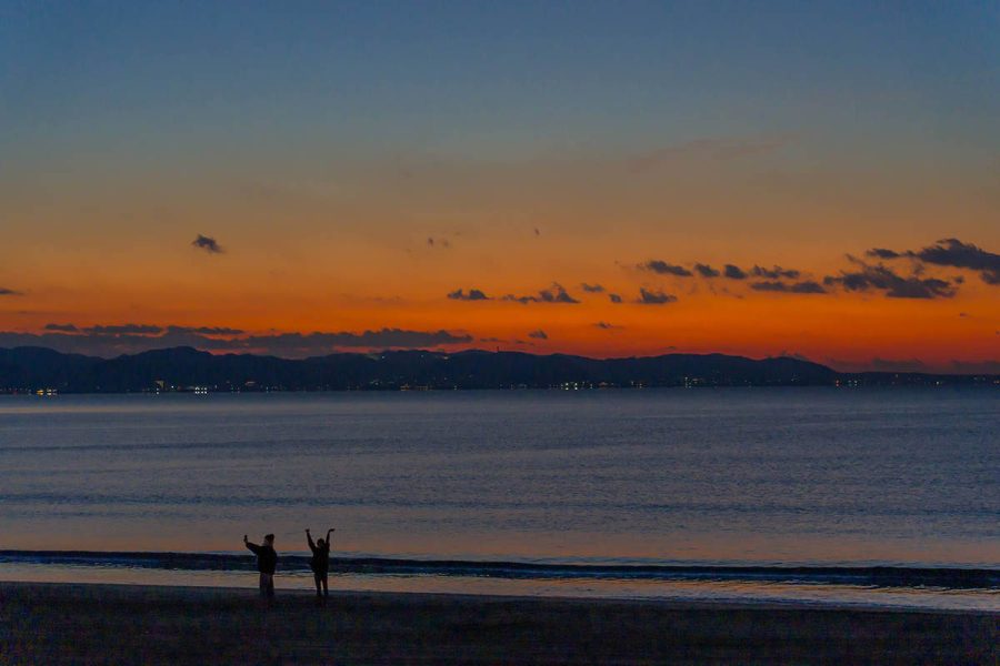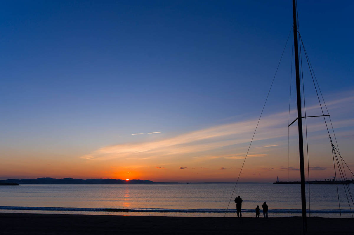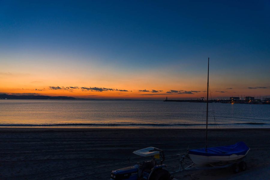 というわけで日の出の時間よりもかなり早い6時前に片瀬東浜に到着。