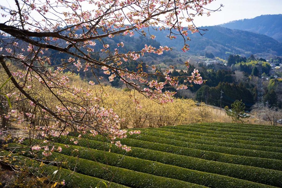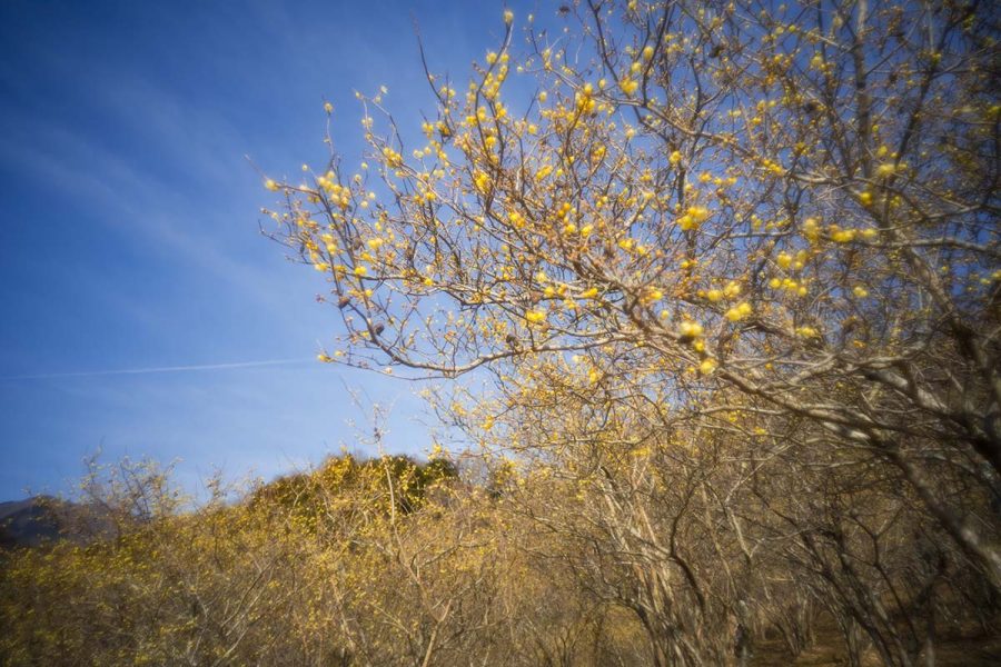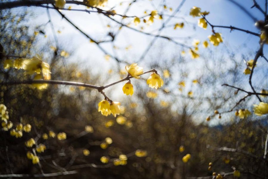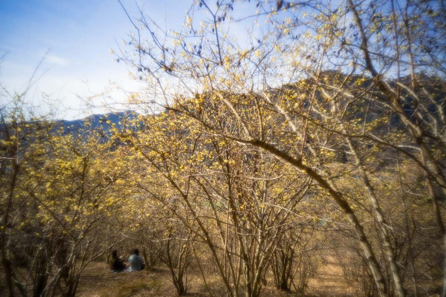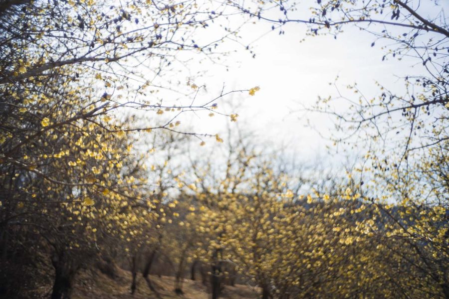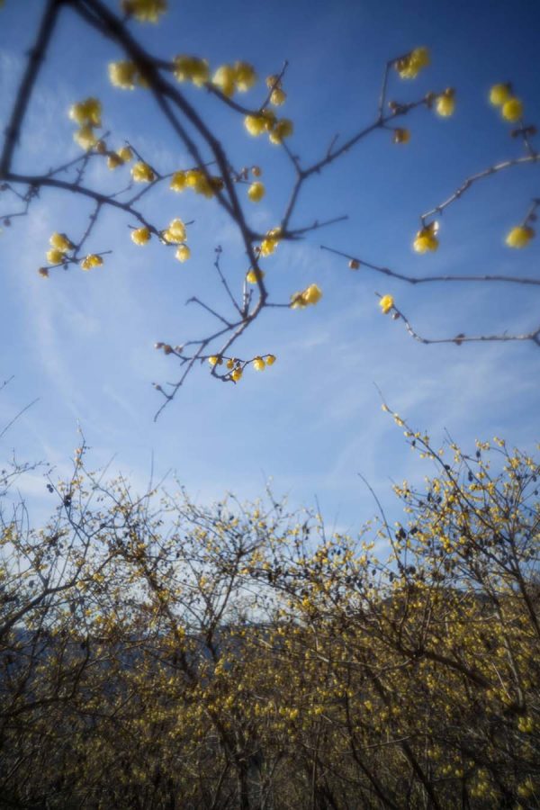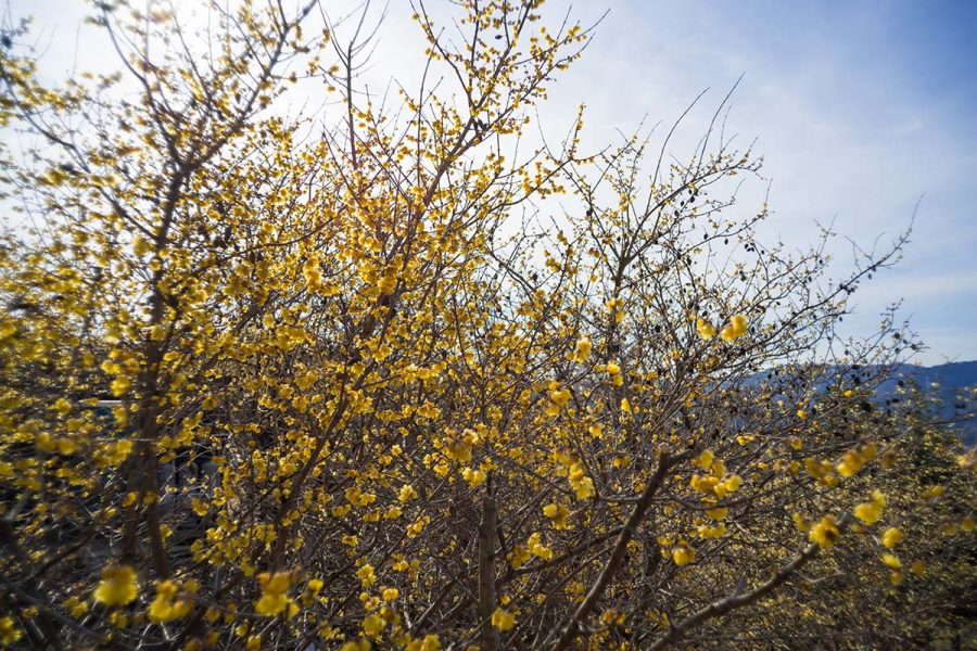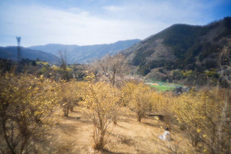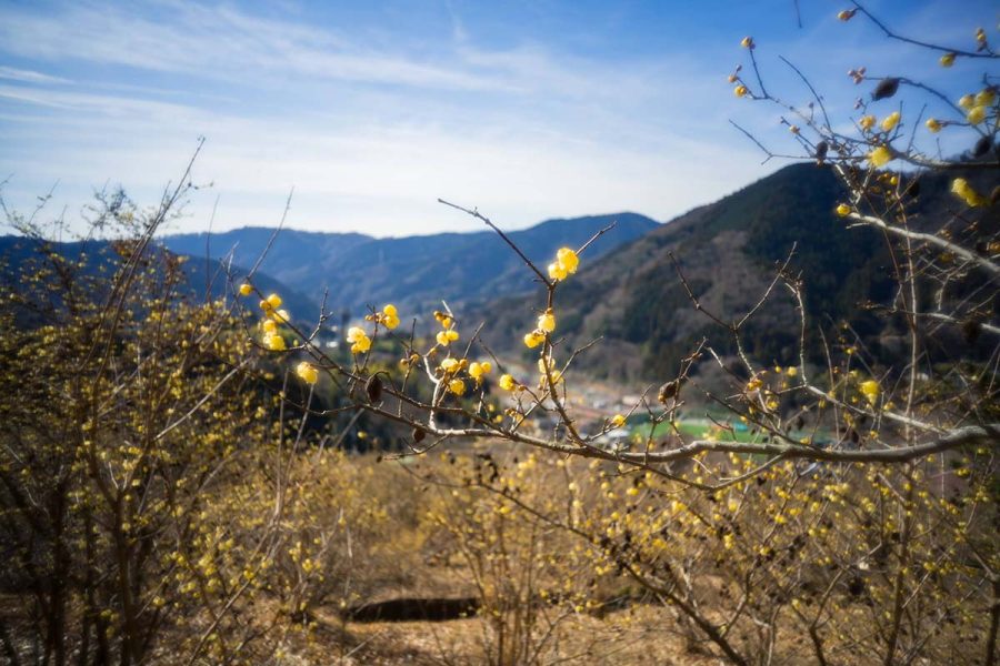荒廃した土地にロウバイを植樹して数十年、山の斜面をいちめん黄色に染める絶景になりました。