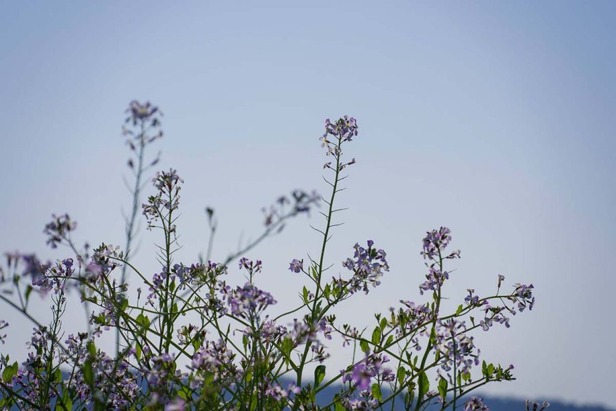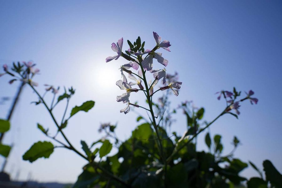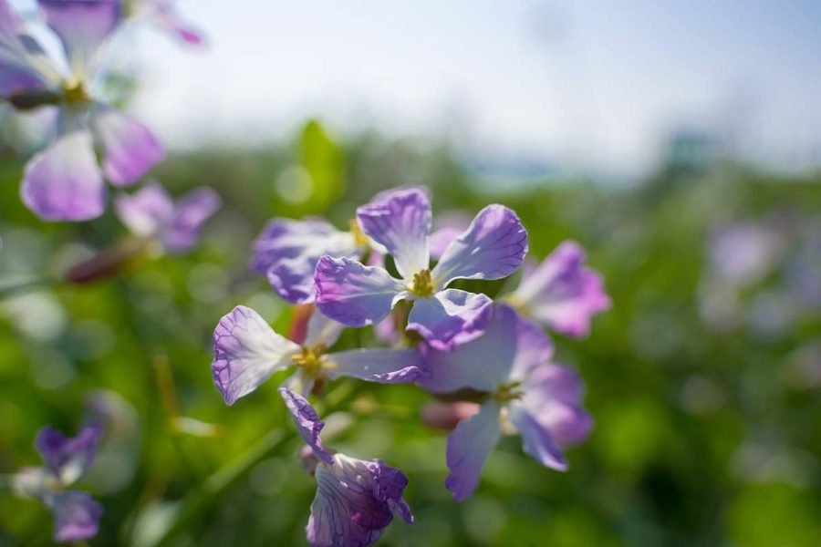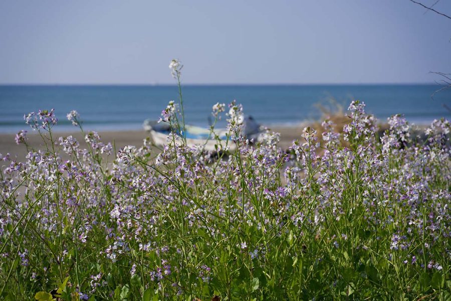 世の中がソメイヨシノの開花でもちきりのころ、浜辺ではハマダイコンの花が見られます。
