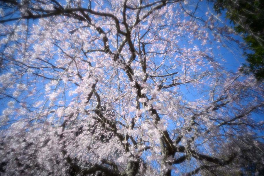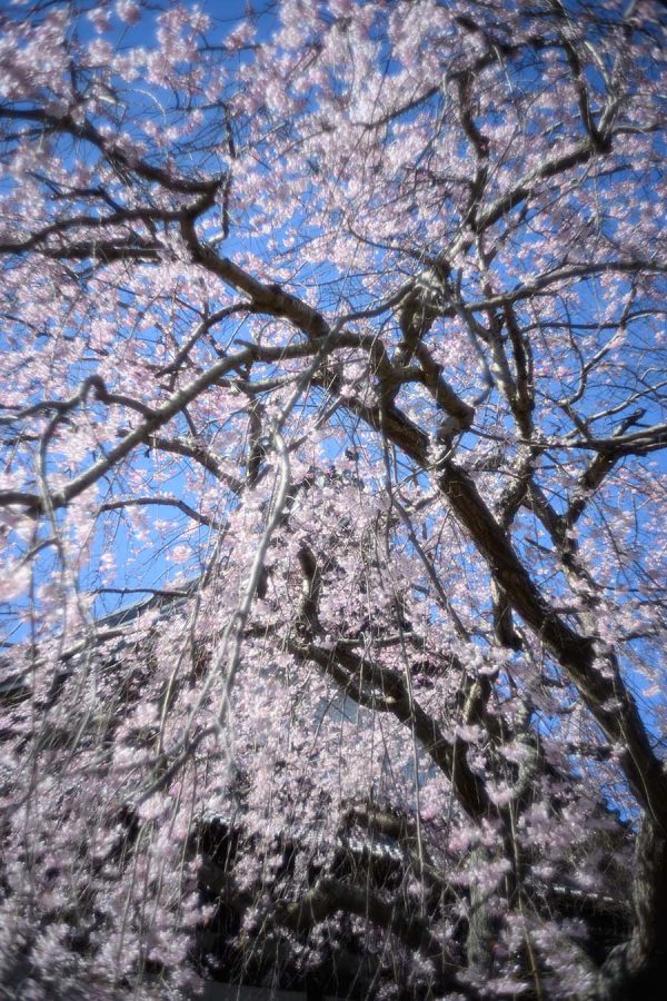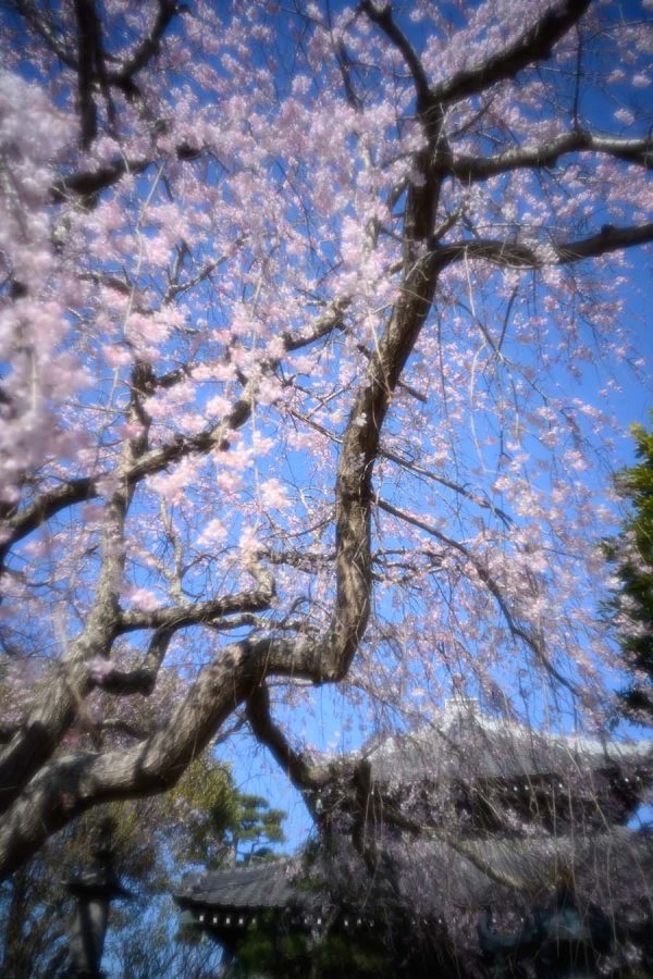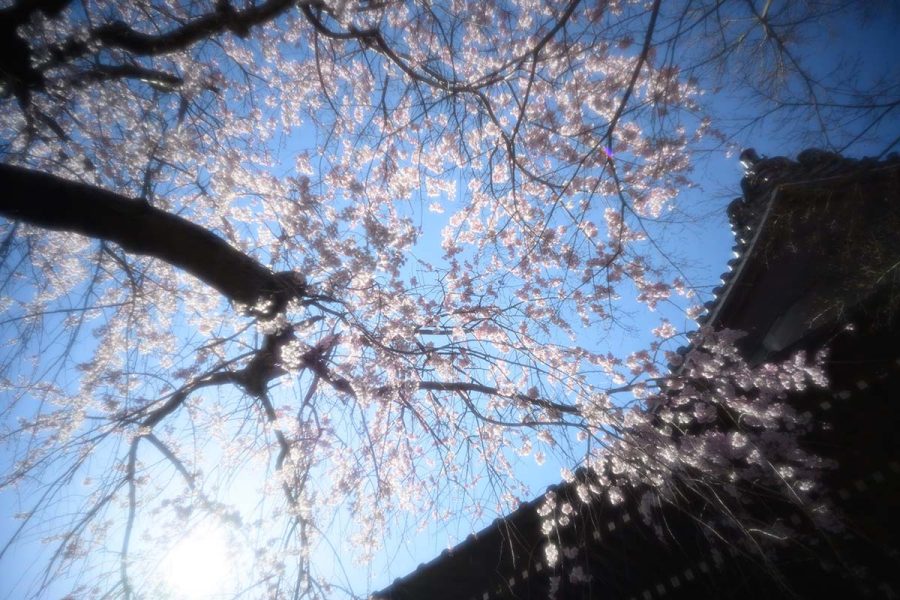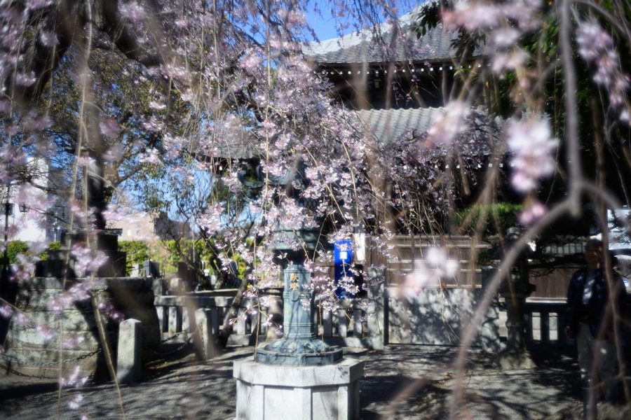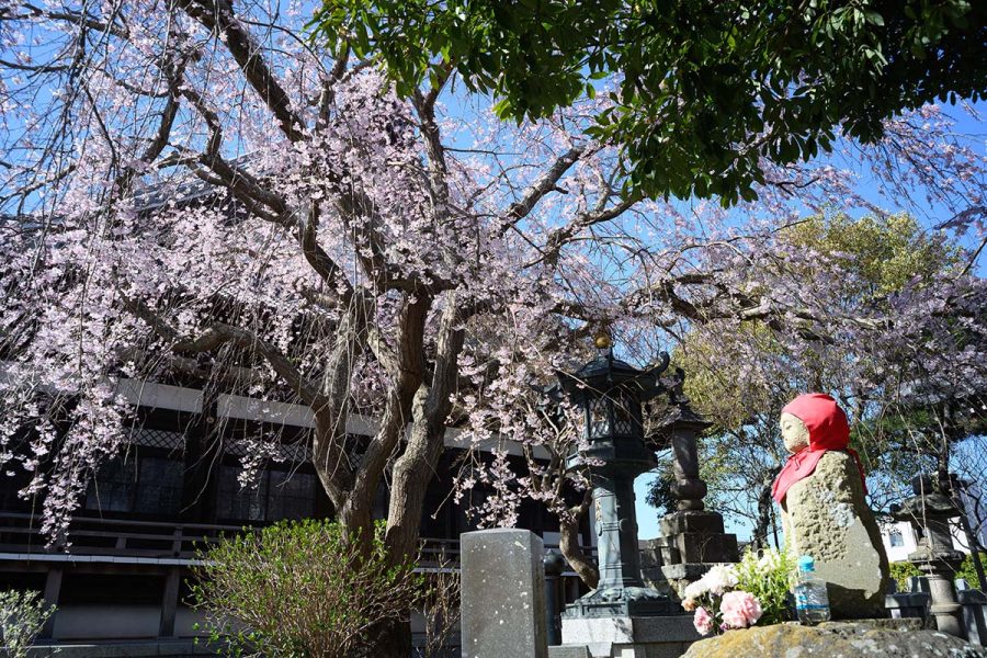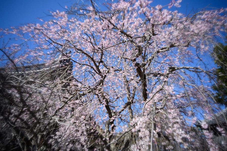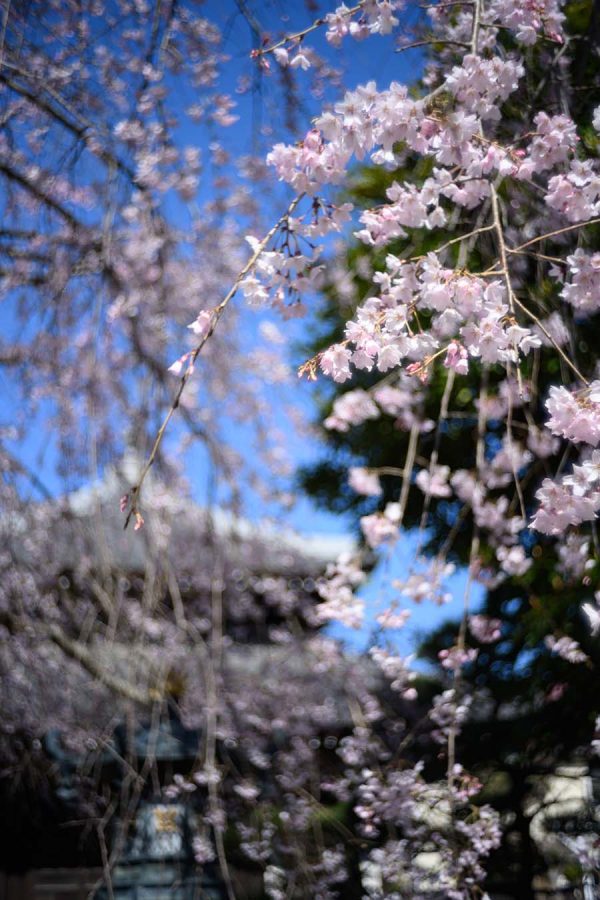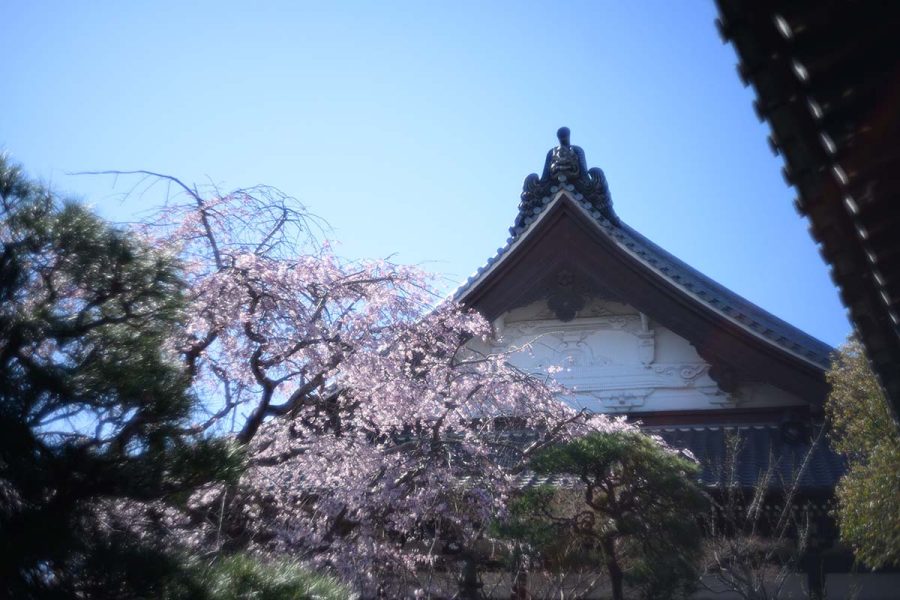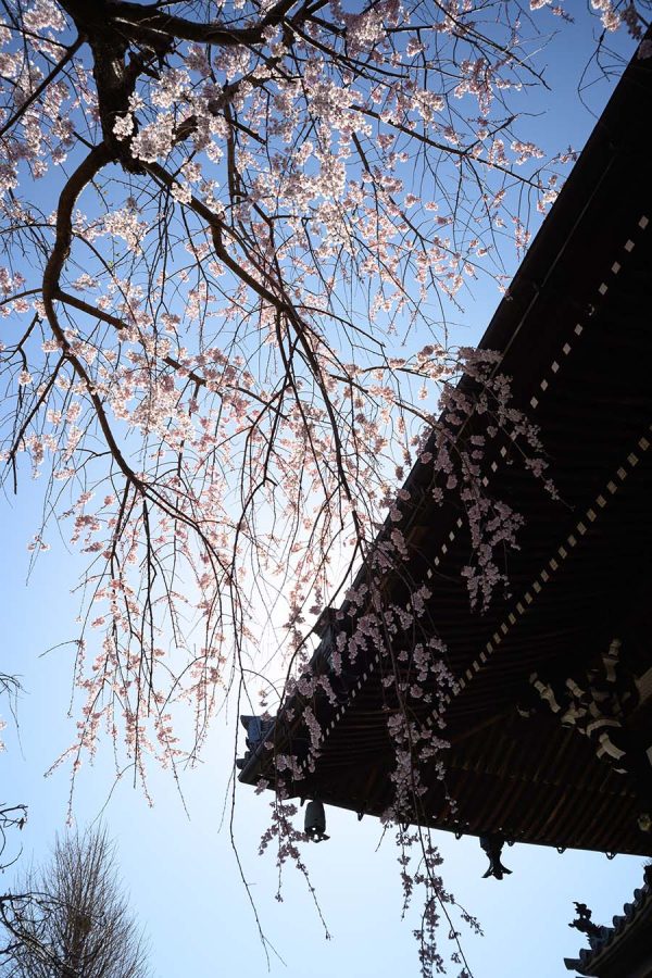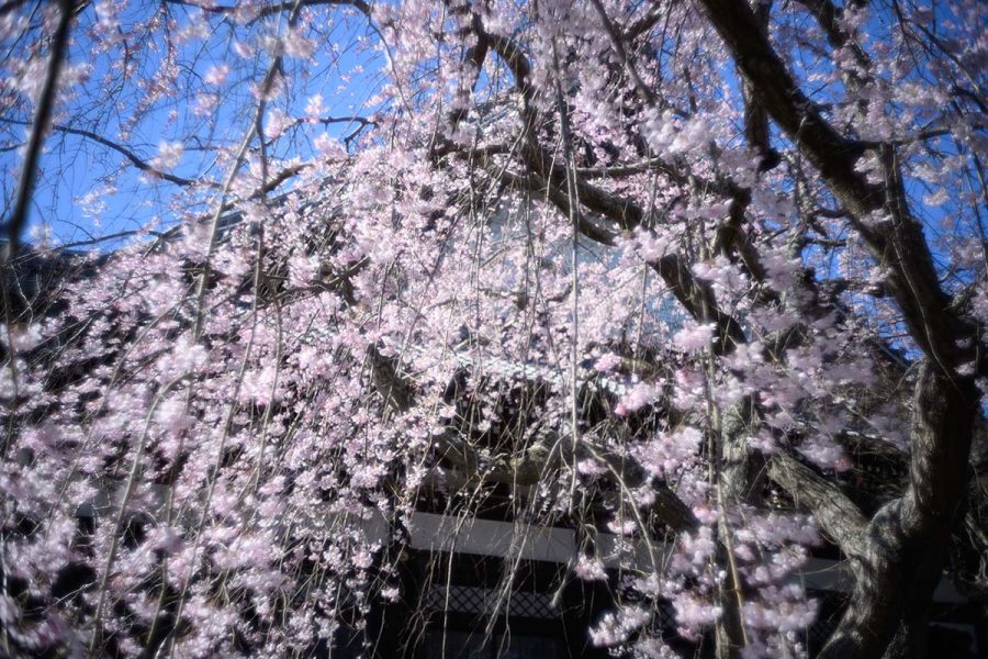 ソメイヨシノが開花するころ、本覚寺のしだれ桜が見頃になります。