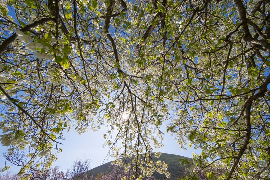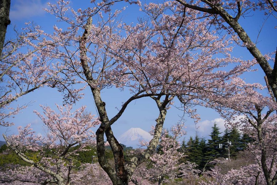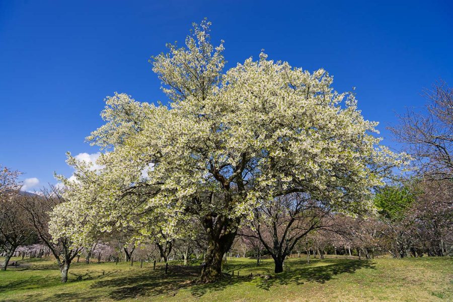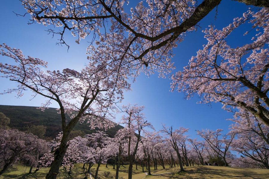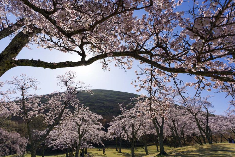 大室山のふもとに各種桜が咲きますが、やはりソメイヨシノが咲きそろうのが見どころです。