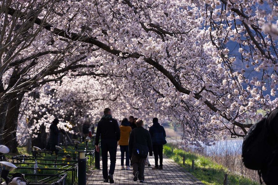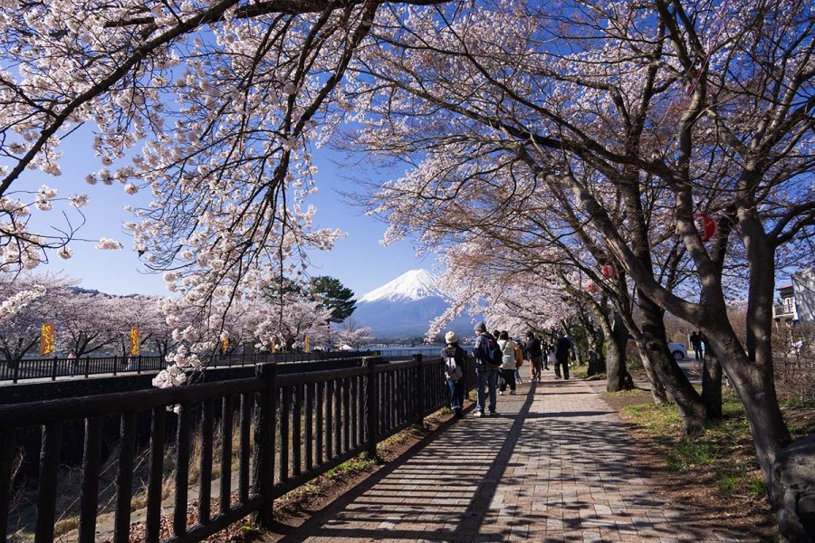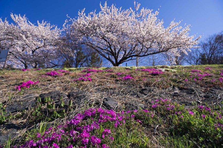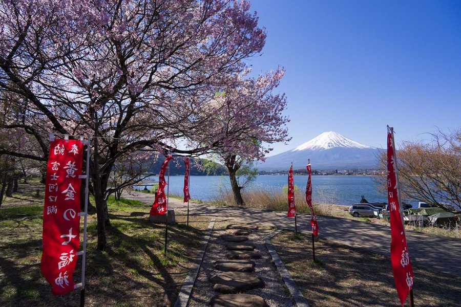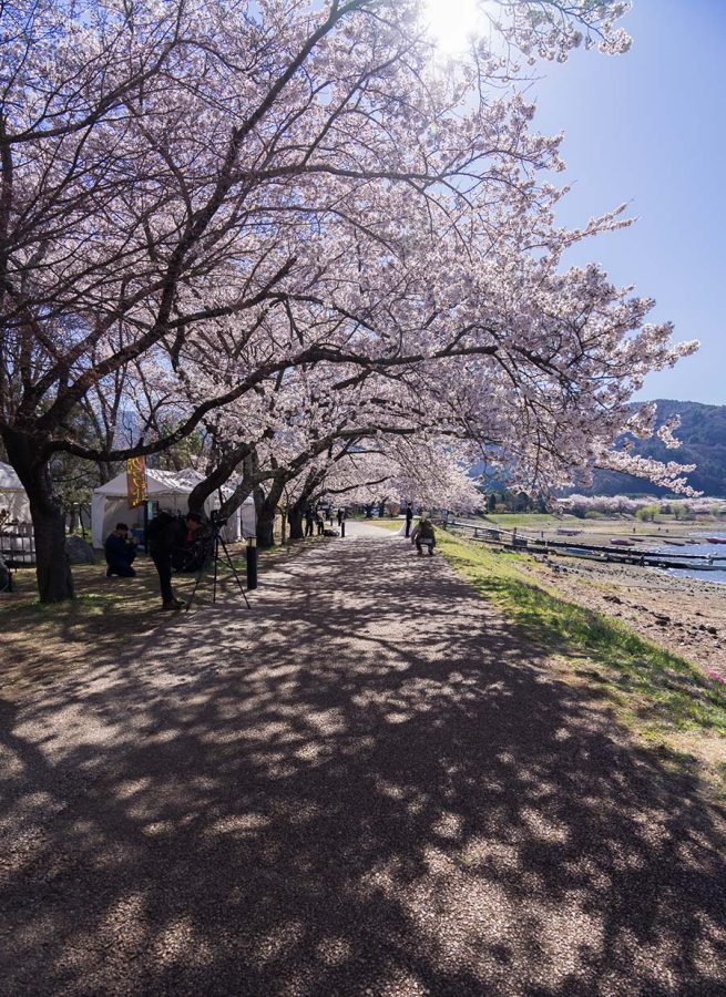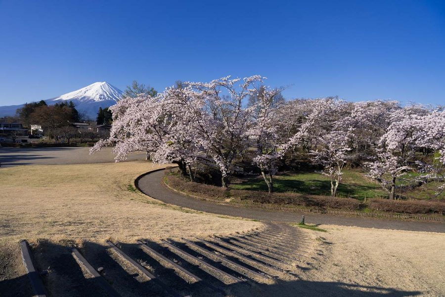 河口湖観光協会のSNSで桜の開花情報をチェックしていたら、「1〜2分咲きです」からのいきなり「見頃になりました!」情報で慌てて出かけました。
