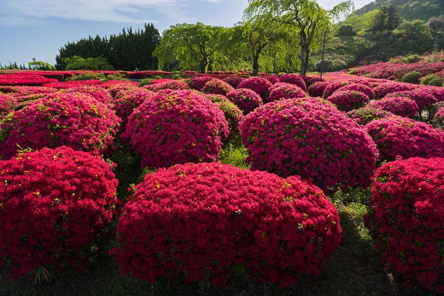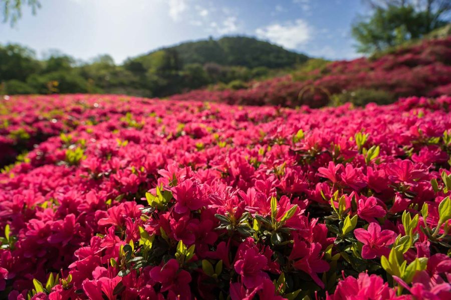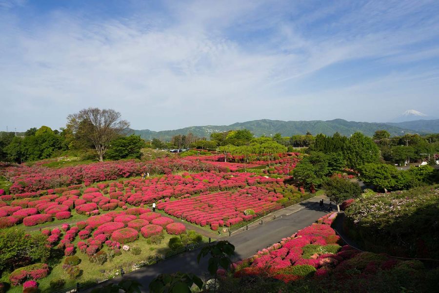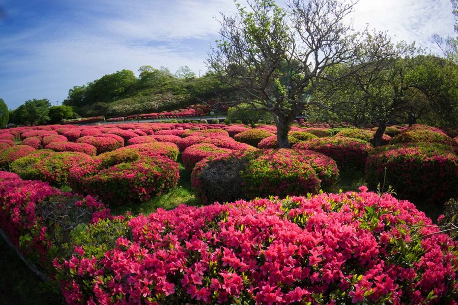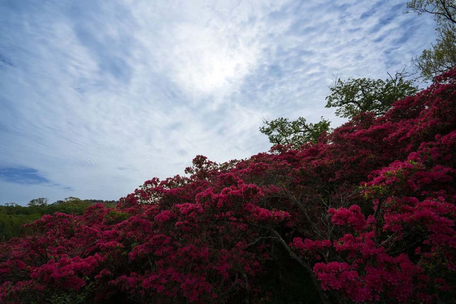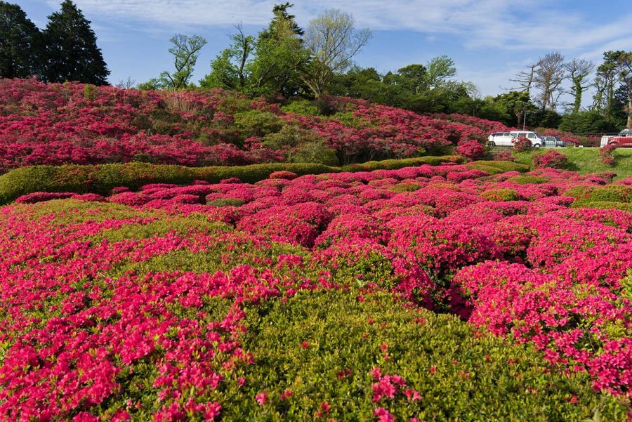 伊豆の小室山公園では約10万本のつつじが見頃になりました。
